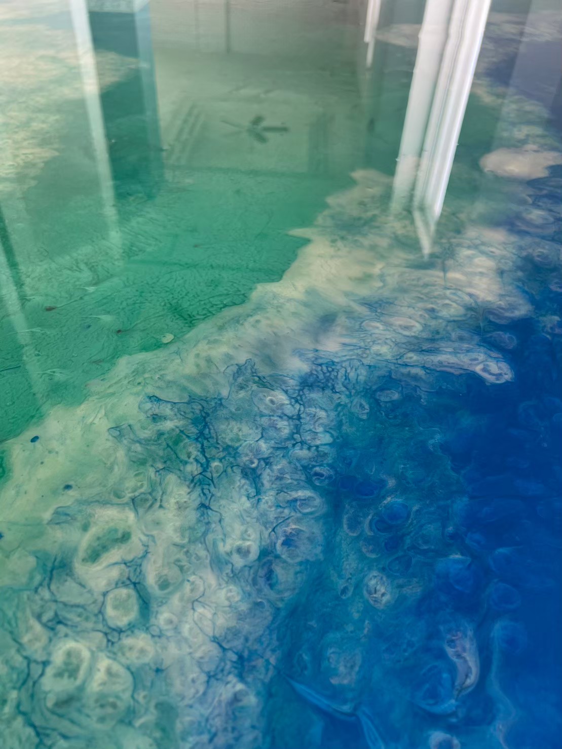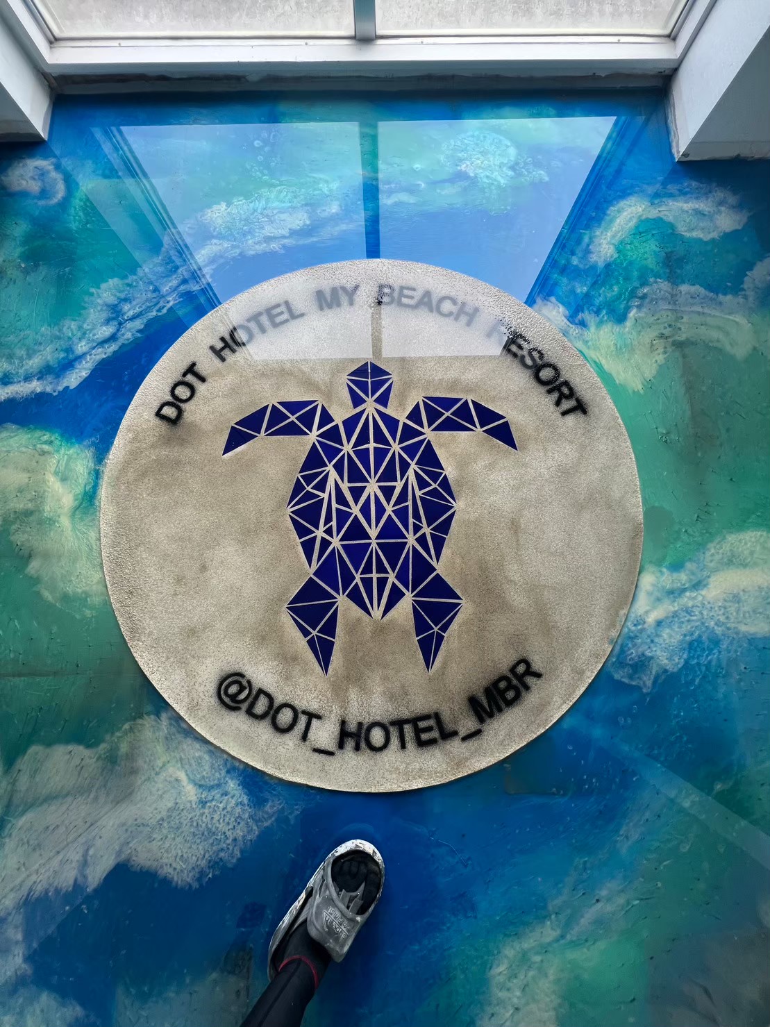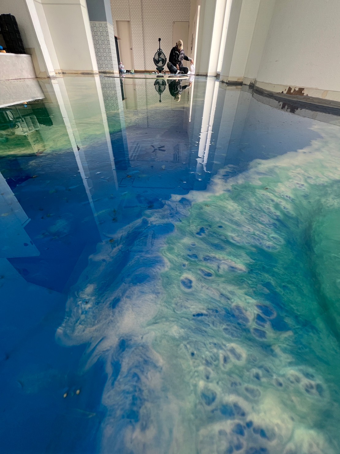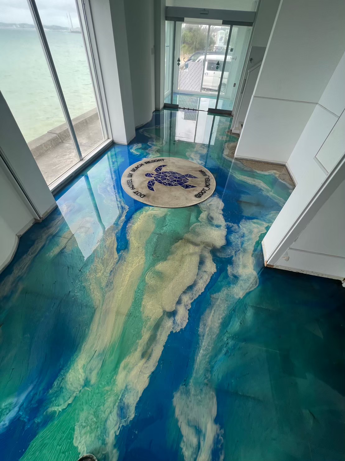 1階ホールには造作カウンター、タイルとレジンで海と亀。